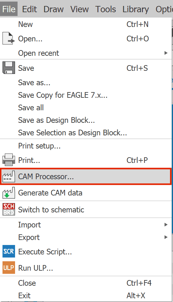 2. Clicca su “File” -> “CAM Processor” nella barra dei menu.