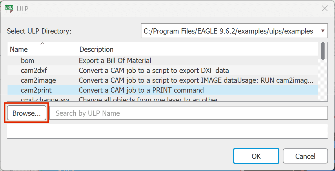 4. Clicca su “Sfoglia...” e seleziona lo script di esportazione precedentemente scaricato: “cpl_exporter.ulp”