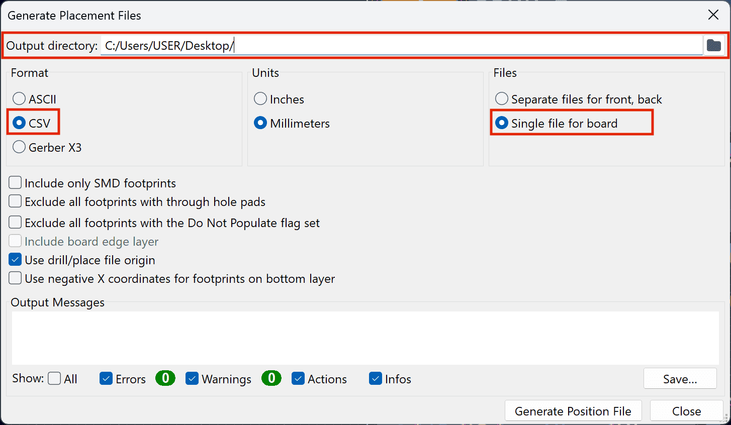 5. Select an output directory and click Generate Position File.