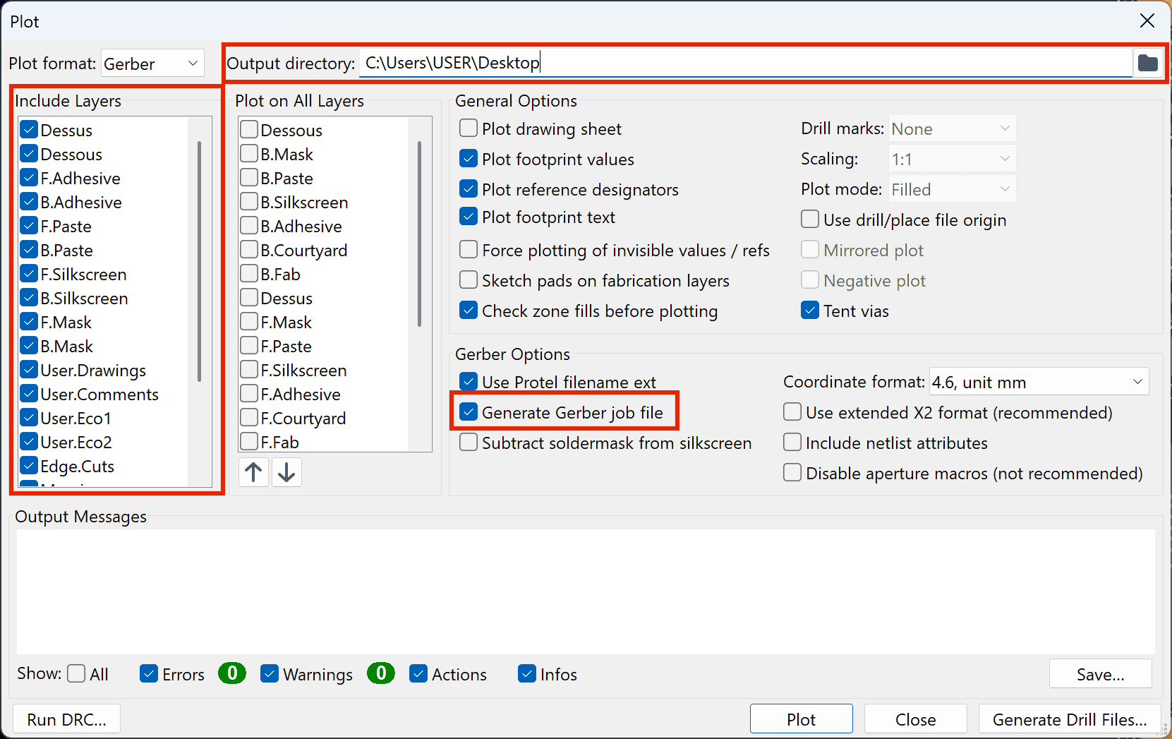 4. (Optional) Select Generate Gerber job file to minimize the information required later in our software.